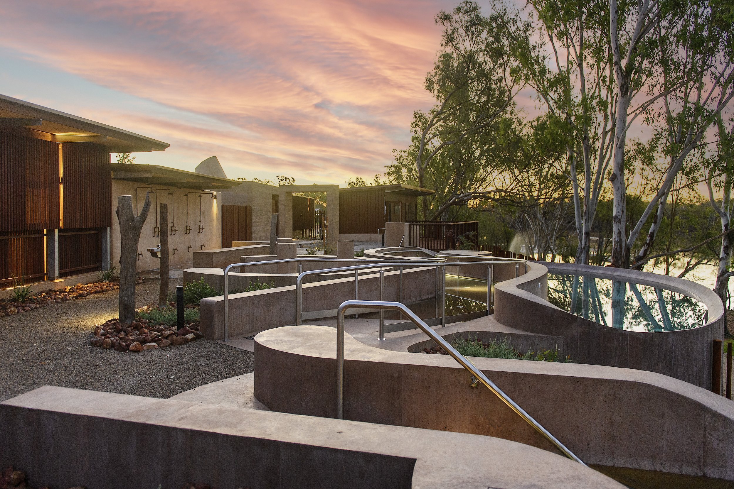 Stop, rejuvenate, and sink into the mineral-rich artesian springs at Cunnamulla Hot Springs, a captivating wellness oasis nestled by the Warrego River in Outback Queensland. The series of pools, each heated by geothermal activity to different temperatures, are complemented by a cold plunge pool, sauna, steam room, and a relaxation room.